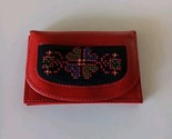 - Red Embroidered Pattern Change Purse Wallet Snap Closure Vintage Retro