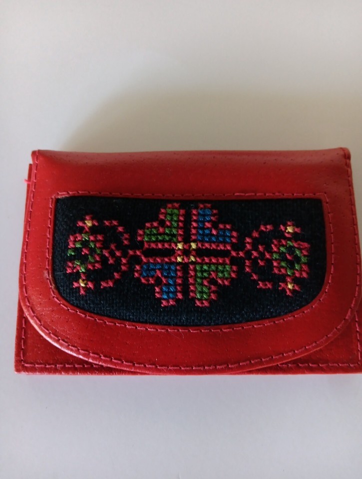 This vintage change purse/wallet is a stylish addition to any collection. The red color and embroidered pattern make it a standout piece, while the snap closure ensures your belongings stay safe and secure. Made of tapestry material, this purse has a retro look that is perfect for casual occasions. This vintage change purse is a must-have. This is a pre-owned item with normal wear. See pictures.