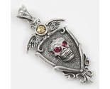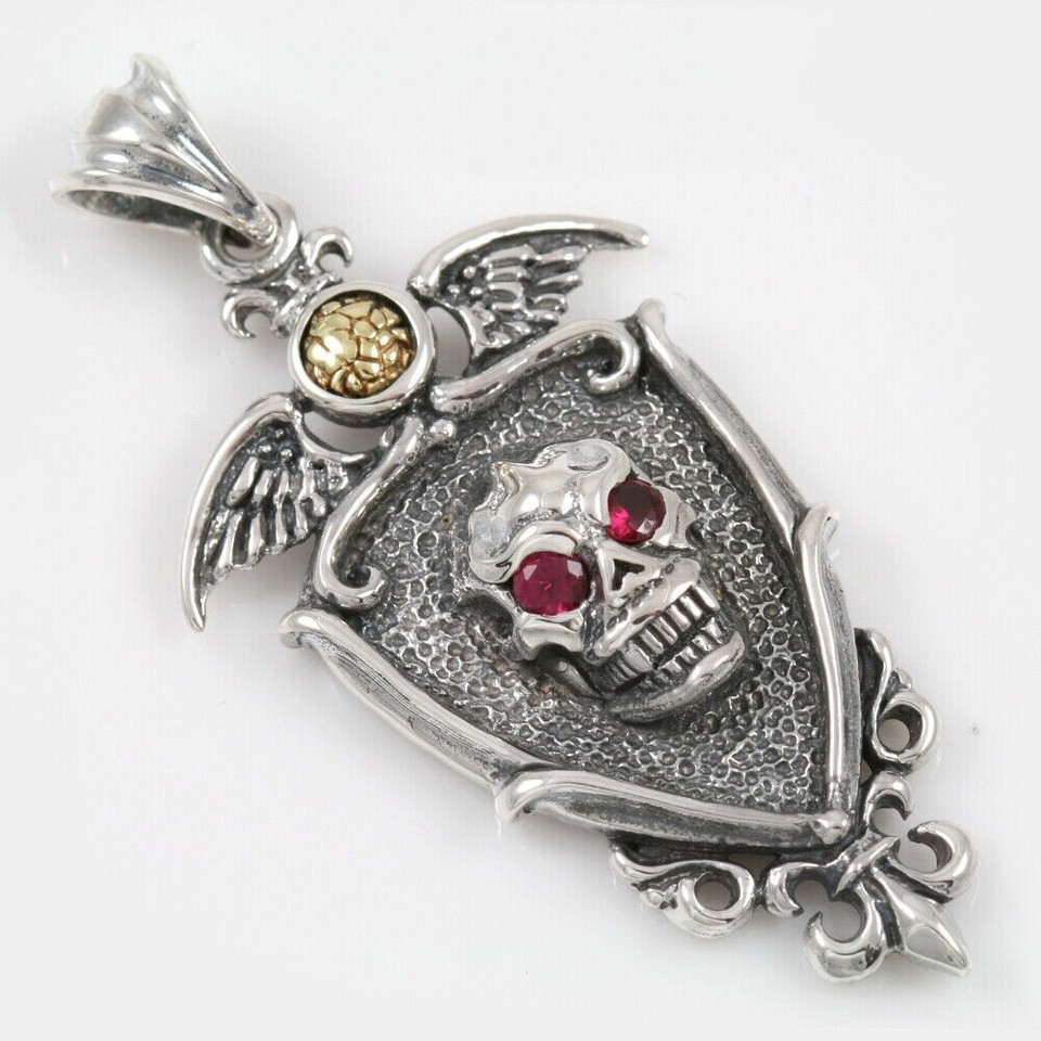 - Red EyeSkull on Winged Shield with Fleur-De-Lis emblem Two Tone Bronze & Silver