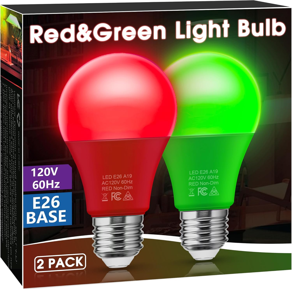 - Red Green Light Bulbs [2 Pack], Christmas Light Bulbs, A19 E26 LED Red Light Bul
