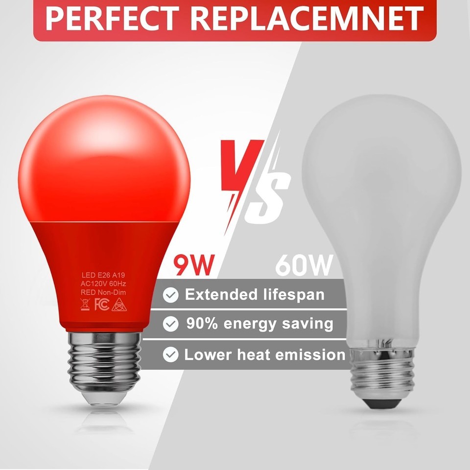 Energy-efficient: A19 led red and green porch light bulb are designed to be energy-efficient, helping you save on electricity costs 90%, lasts longer, while providing bright illumination.