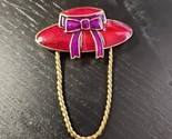 - Red Hat Eyeglass Holder Pin Brooch Enameled Gold Tone Red Bow