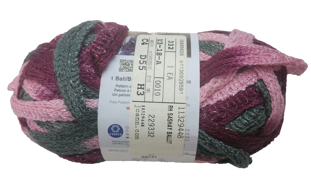 One ball Red Heart Boutique Sashay Metallic yarn. Color Ballet 1946 Lot 143