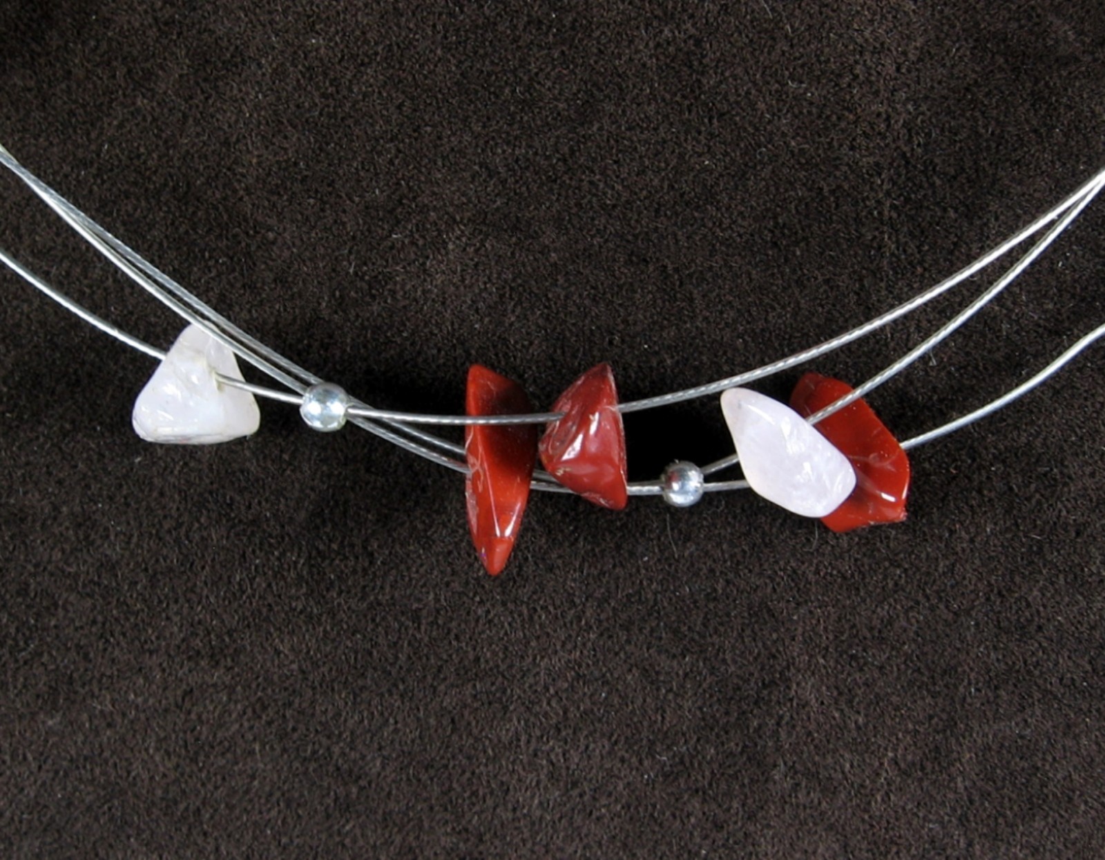 This is a Vintage RED JASPER and QUARTZ STONE FLOATING NECKLACE!