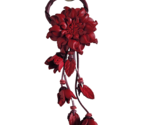 Red Large Leather Flower Key Chain Purse Charm Hand Crafted Floral Tassel Bag