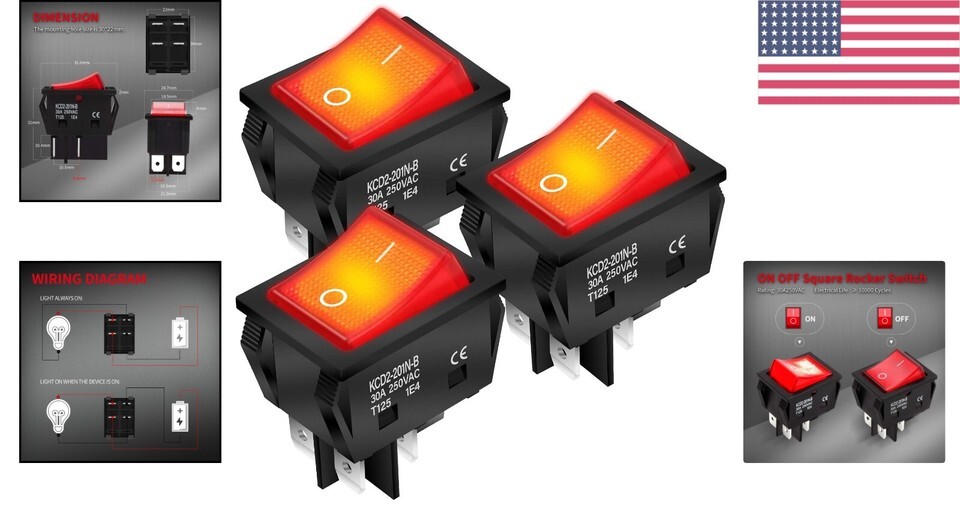 Red Lighted 30 Amp Rocker Toggle Switch - DPST Design for Easy Operation ? ? ? ? ? ? ? ? ? ? ? ? ? ? ? ? ? ? ? ? Red Lighted 30 Amp Rocker Toggle Switch Elevate your device management with our high-performance Rocker Toggle Switch, designed with a focus on durability and intuitive operation. Features: 30A Rocker Switch: Rated at 30A 250VAC, suitable for use across a range of amperages - from 3A up to 30A at both 120V and 240V. Illuminated Indicator: The built-in red lamp lights up when the switch is activated, providing a clear indication of operational status. ON/OFF DPST Design: A Double Pole Single Throw switch that ensures reliable switching capabilities (-25C to +125C temperature range). Easy Installation: Designed for a hassle-free installation with a standard cut-out size of 30X22mm; features a Snap In flush mount design for seamless fit. Versatile Application: Ideal for industrial, scientific, and household appliances including water dispensers, treadmills, coffee pots, and a variety of electronic equipment. Benefits: Robust 30A rating makes it suitable for heavy-duty applications. Illuminated switch ensures clarity in low-light environments. Reliable double pole operation for added safety and functionality. Flexibility to adapt to various equipment needs. Ease of installation minimizes downtime and maximizes efficiency. Why choose our Red Lighted 30 Amp Rocker Toggle Switch? When it comes to managing power with precision and style, our Red Lighted 30 Amp Rocker Toggle Switch stands unmatched. Its heavy-duty construction and clear operational indicator not only enhance functionality but also improve efficiency. Whether you're updating your homemade projects or requiring quality for industrial applications, this switch offers reliability you can count on. Don't compromise on quality ? choose our Rocker Toggle Switch for a blend of safety, style, and superior performance. Order now and take the first step towards a more efficient setup! Shipping Free Fast Shipping - We offer free shipping to most of the USA with a normal delivery time of 3-7 days. However, due to the current situation, additional delivery time (up to 3 weeks) may be required for some items. Alternative Carriers - We may use alternative carriers (e.g. USPS, FedEx, UPS, etc.) to ensure your package arrives safely and on time. Due to the use of multiple carriers, we are unable to provide a tracking number automatically. Handling Time - Orders are processed and shipped within 1-2 business days of receiving cleared payment. Shipping Restrictions - Shipping to Alaska, Hawaii, Puerto Rico, Guam, and other US territories may incur shipping charges or delivery restrictions. Please contact us before ordering, or your order can be refunded/cancelled. State Restrictions - There may be restrictions based on your state of purchase. For example, certain items may not be shipped to California due to state regulations. Contact for Tracking Updates - If you require tracking updates or have any concerns about the delivery of your order, please feel free to contact us, and we will be happy to assist you. Return 30-Day Hassle-Free Returns - We want you to be completely satisfied with your purchase. If you are not, you can return the item within 30 days of receiving it for a full refund or exchange. Easy Return Process - To start a return, simply contact us and we will provide you with a prepaid return shipping label and detailed instructions. Restocking Fee - There are no restocking fees for returns. However, the buyer is responsible for return shipping costs if the return is not due to a seller's error. Refund Processing Time - Refunds will be processed within 5 business days of receiving the returned item in its original condition. Payment We accept all major credit cards, PayPal, and Apple Pay for your convenience. Your payment information is secure and encrypted to ensure a safe and seamless transaction. Please complete your payment within 3 days of purchase to avoid any delays in shipping. Feedback Your feedback is extremely important to us. We strive to provide the best products and customer service possible. If you are satisfied with your purchase, please take a moment to leave us a positive review. If you have any concerns or issues with your order, please contact us before leaving negative feedback. We are committed to resolving any problems and ensuring your satisfaction. Contact Us If you have any questions or concerns, please feel free to reach out to our customer support team. You can contact us through the messaging system. We are available Monday to Friday, 9:00 am to 5:00 pm EST, and we will do our best to respond to your inquiry within 24 hours. Buy it now and enjoy a pleasant shopping experience! UPC: Not Set Model: Rocker Switch Unit Quantity: 0.49 ounces Features: Heavy Duty,Lighted,Easy Installation,Indicates ON/OFF Status Application: Home Appliance,Industrial,Scientific,Household Appliances Material: Plastic Smart Home Compatibility: Universal Suitable For: Interior Smart Home Protocol: Proprietary Mounting Style: Snap-In Resistance Properties: Heat Resistant Compatible Wire Gauge (AWG): 16-20 Room: Any Room Protection Properties: Surge Protection Brand: Unbranded Fuse Type: Not Set Type: Rocker Switch Operation Method: On/Off Termination Type: Quick Connect Current Type: AC Maximum Amperage: 30 A Finish: Not Set Switch Style: Rocker MPN: Not Set Coil Voltage: 120 V Current Rating: 30 Amps Number of Positions: 2 Number of Outlets: 0 Number of Phases: 1 Item Height: Not Set Item Width: Not Set Item Length: Not Set Color: Red Bulb Compatibility: Not Set Number in Pack: 3 Contact Configuration: DPST Orientation: Horizontal Power: Not Set Number of Circuits: 1-10 IP Rating: Not Set Country/Region of Manufacture: Not Set Timer Control: None Operating Temperature: -25 C to 125 C Unit Type: Unit