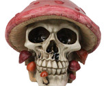 - Red Macabre Toadstool Mushroom Cap Skull With Mini Fungi Figurine 5" L