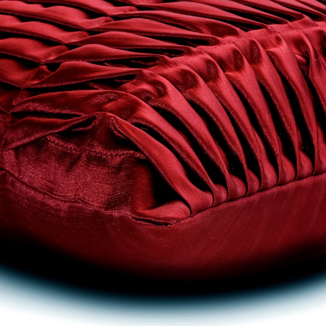 - Red Satin Textured & Pintucks 16"x16" Throw Pillow Cover - Lustrous Folds