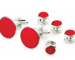 This Red Studs and Cufflinks Set with Silver Trim by David's Formal Wear is a stylish and personalized accessory set perfect for formal occasions like weddings. The bold red color and silver trim add a touch of elegance to any outfit, making it a standout choice for men looking to elevate their look. The set includes both cufflinks and studs, allowing for a coordinated and sophisticated appearance. Ideal for those wanting to make a statement at their next formal event.
