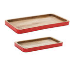 Red Trimmed Wooden Tray (Set of 2) - 790588