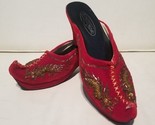 These Red Velvet Chinese Bridal Shoes with Golden Dragon Platforms are a stunning pair of Gucci vibe pinup slippers perfect for a wedding, prom, or other special occasions. The pointed toe design, beaded and sequin accents, and high heel height make them a glamorous and elegant choice for any bride or wedding attendee. Made from silk velvet with a fabric outsole, these vintage-inspired shoes are both stylish and comfortable, making them a perfect addition to any wedding wardrobe. No size listed but I wear a US 7 and they fit perfectly. I use recycled materials for packaging whenever possible. bOx1 Please ask questions as all sales are final.