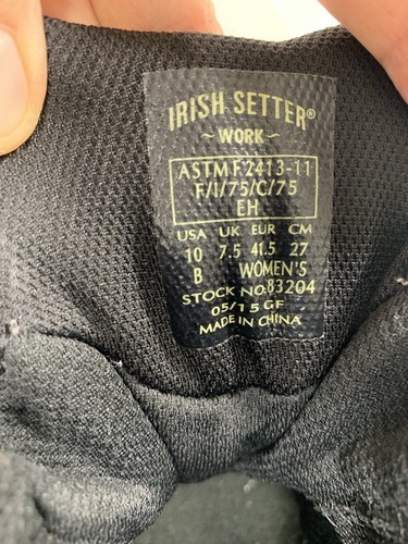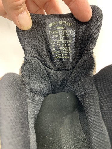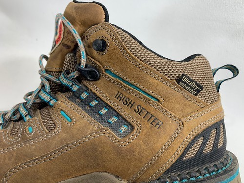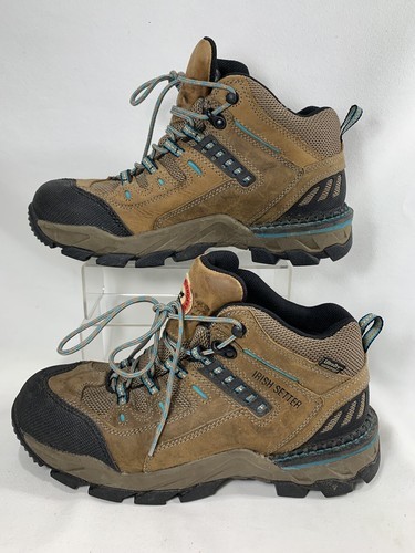 Super nice pair of Irish Setter Womens Work Boots. These 3/4 shoes are Ultra Dry, waterproof and have a steel toe. Would be great used as work boots or hiking shoes, although they are not light weight. They are a very strong/sturdy looking and feeling shoe.