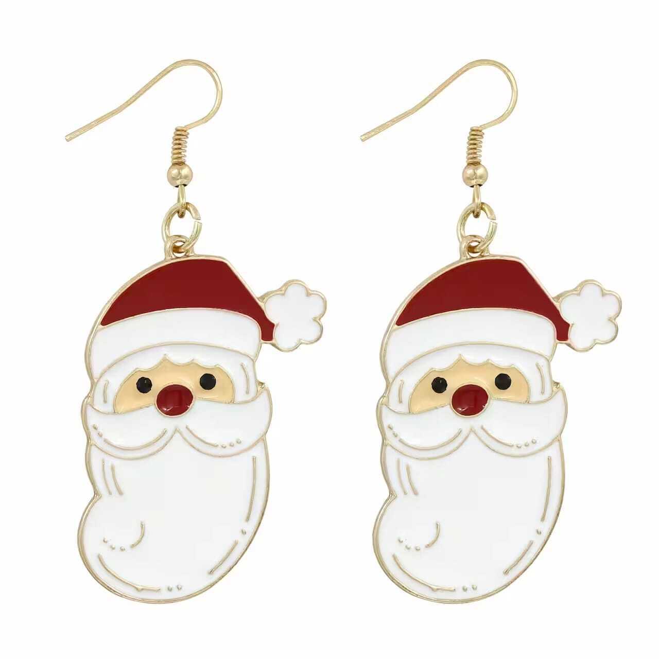 - Red and White With Gold Santa Christmas Enamel Santa Head Earring