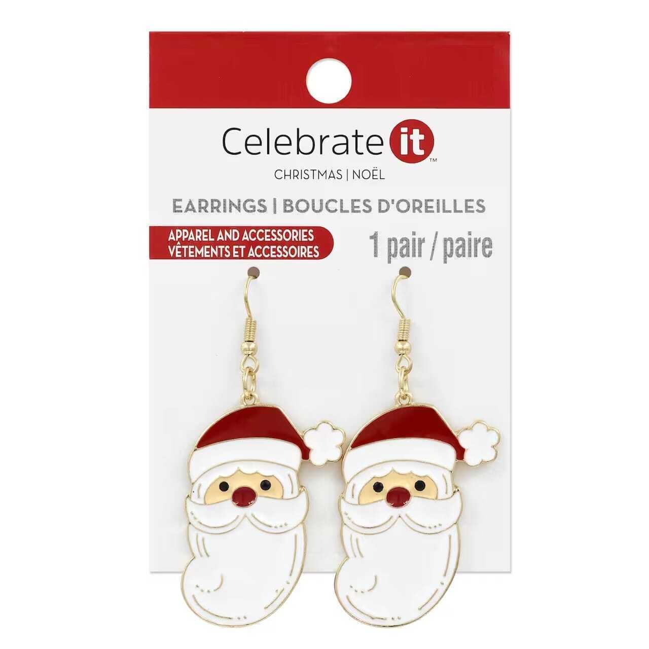Santa Christmas Enamel Santa Head Earring. Ring in the season with a bit of fun and flair by donning this playful pair of enamel earrings from Celebrate It.
