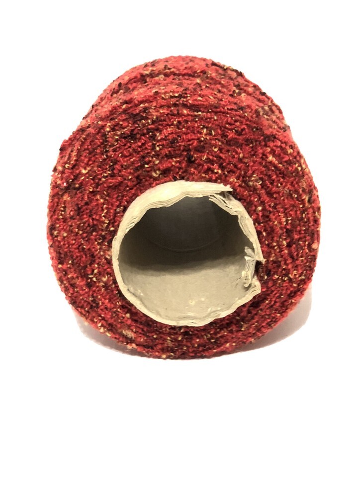 Elevate your crafting projects with this vibrant 12oz. weaving yarn, perfect for those passionate about crochet and knitting. Its rich red hue is accented with black and yellow specks, adding a touch of unique character to any creation. The cone shape ensures efficient use and smooth feeding during your projects.
