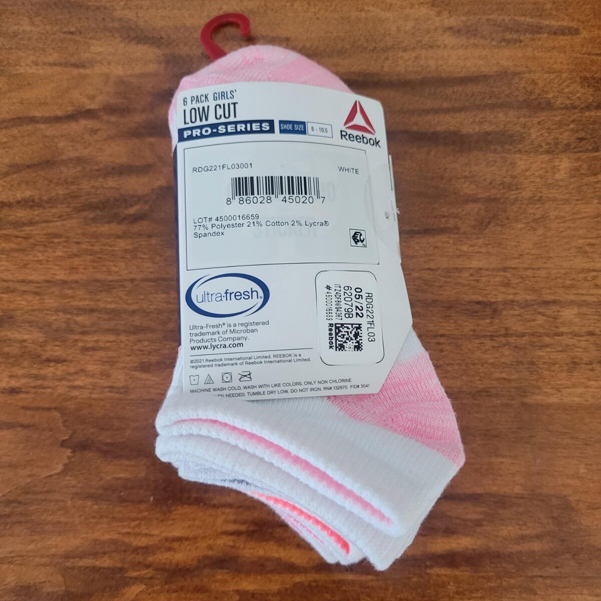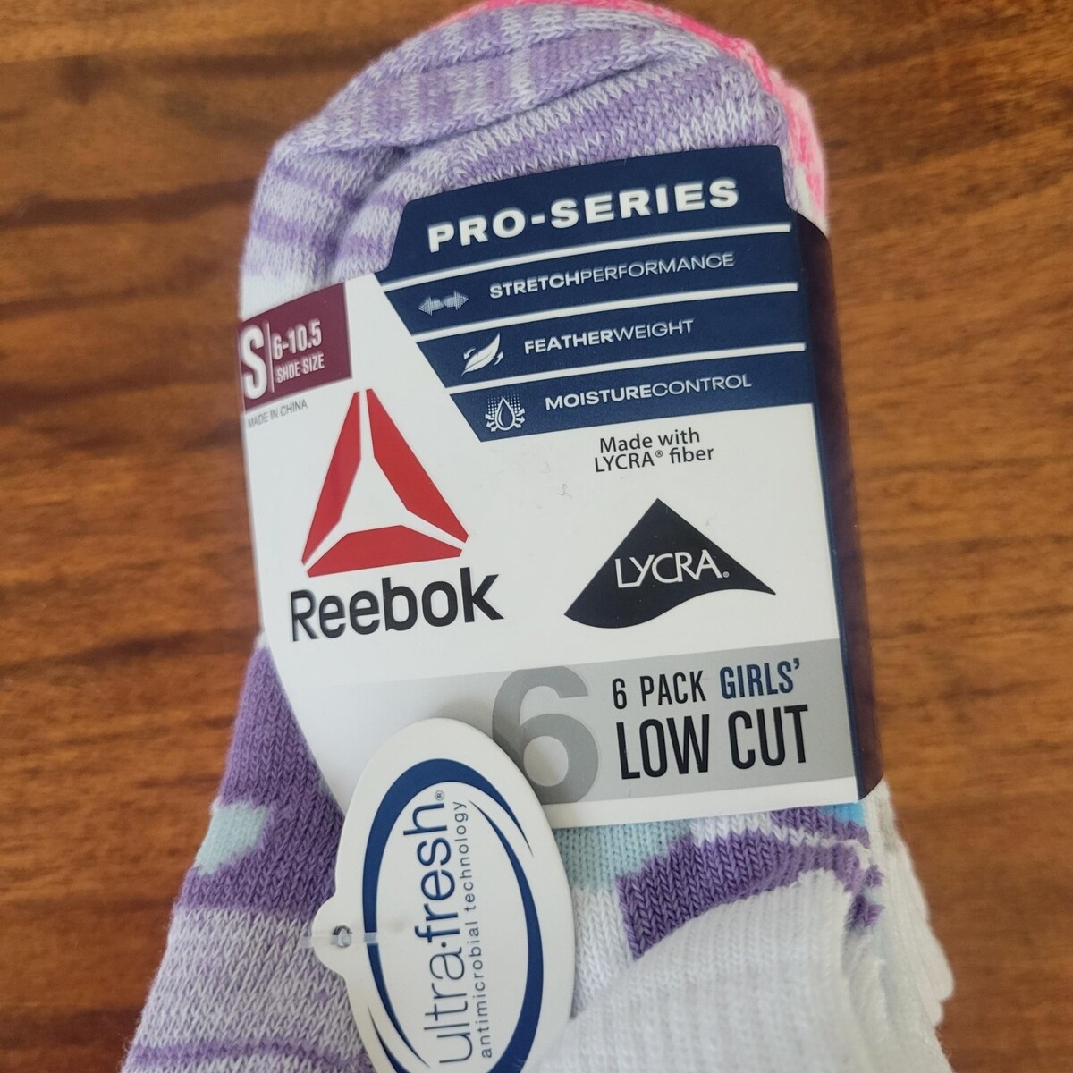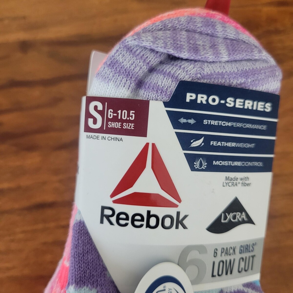 - Reebok Girls Low Cut Socks Small 6-10.5 Pack of 6 Multicolor NEW Pink Purple