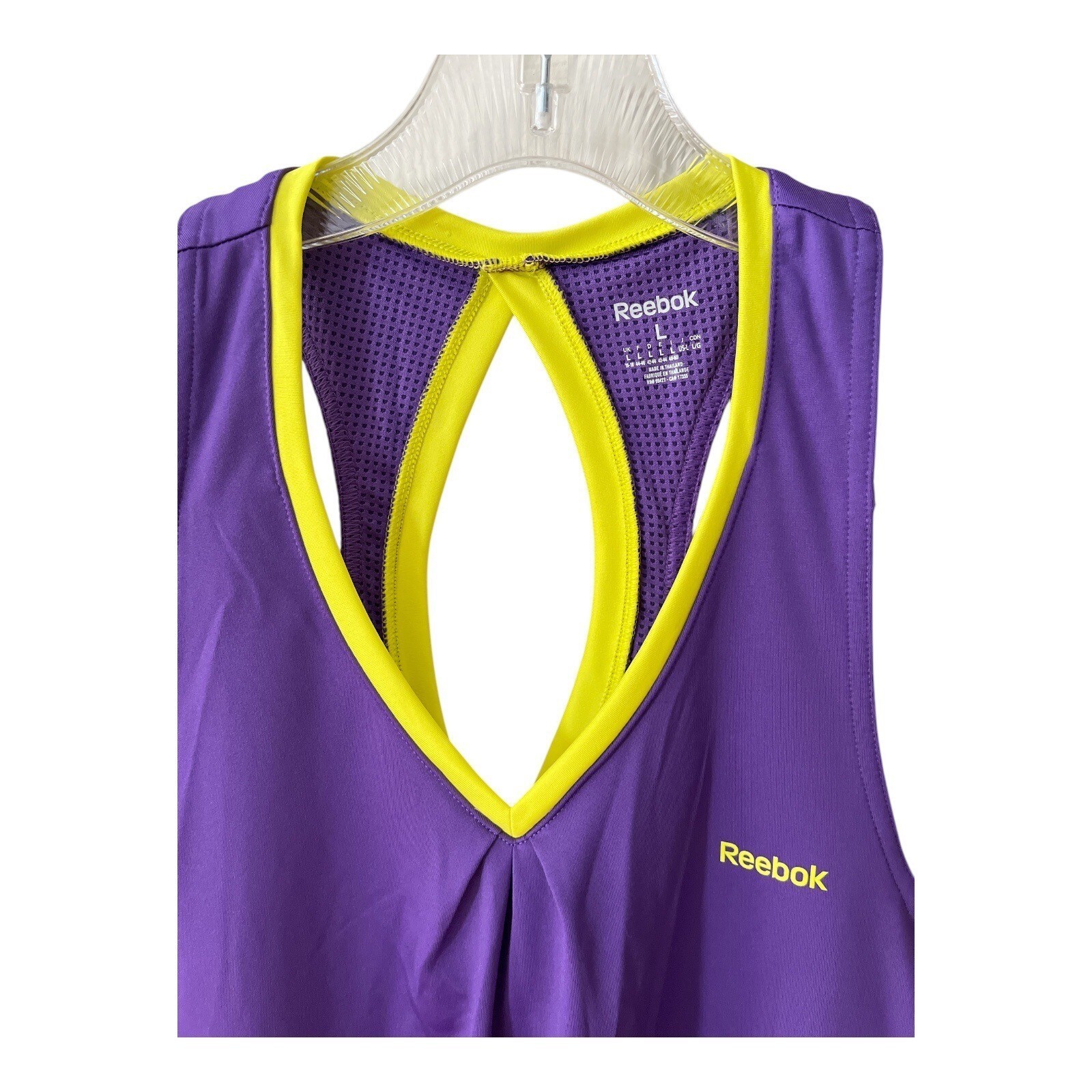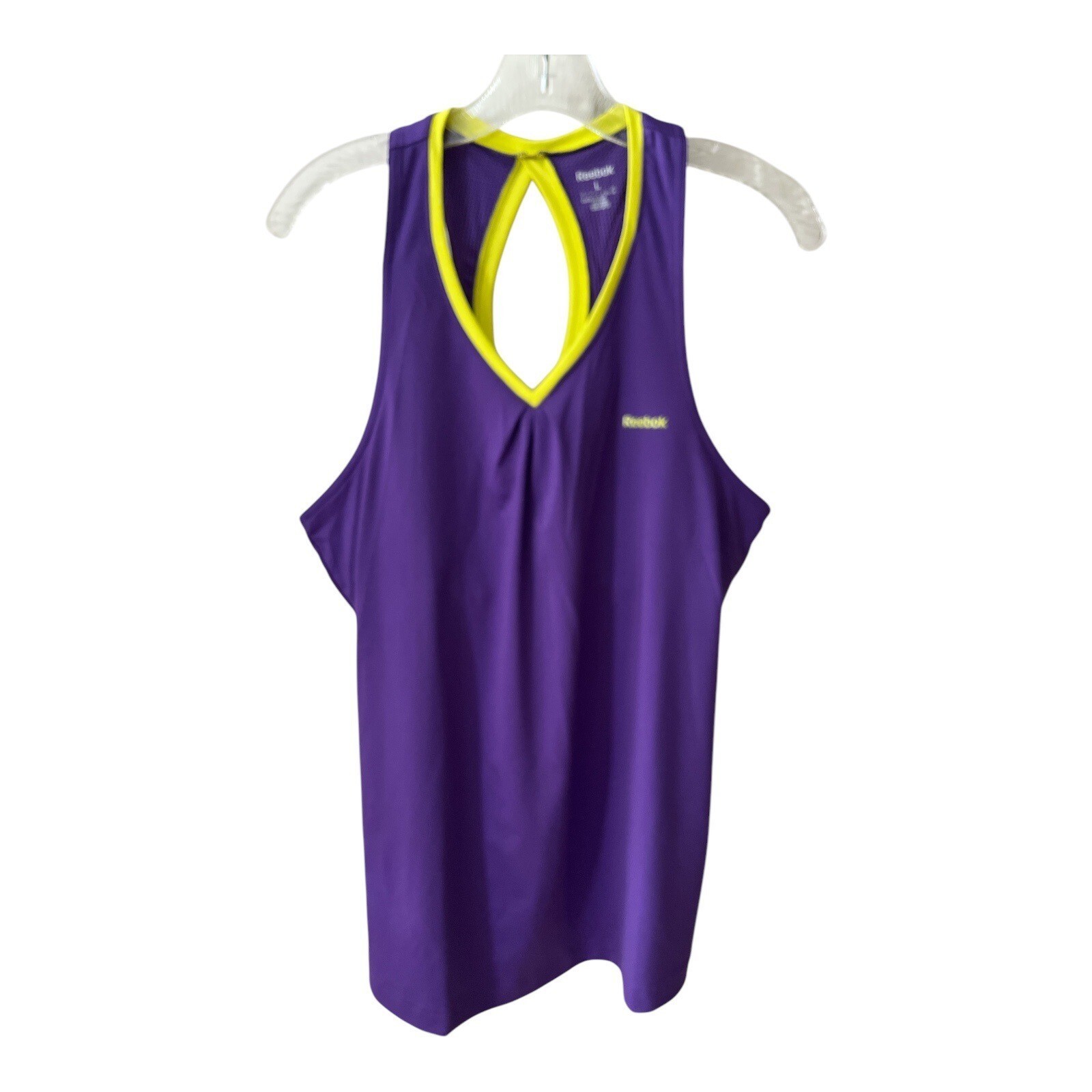 - Reebok Purple Keyhole-Back Tank Top with Yellow Trim – Size Large