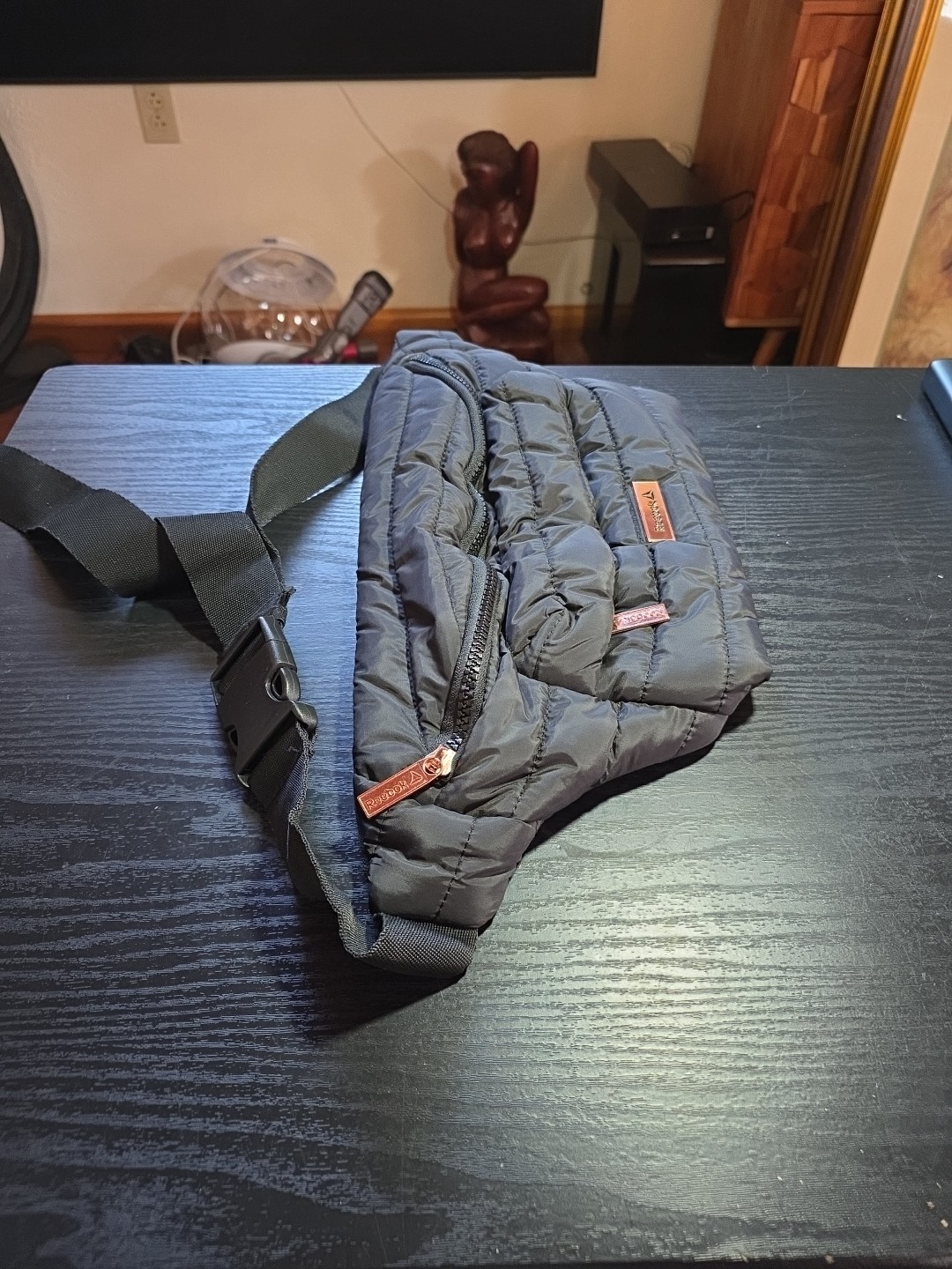 - Reebok Rylan Quilted Large Black Fanny Pack Belt Bag Crossbody Purse Rose Gold