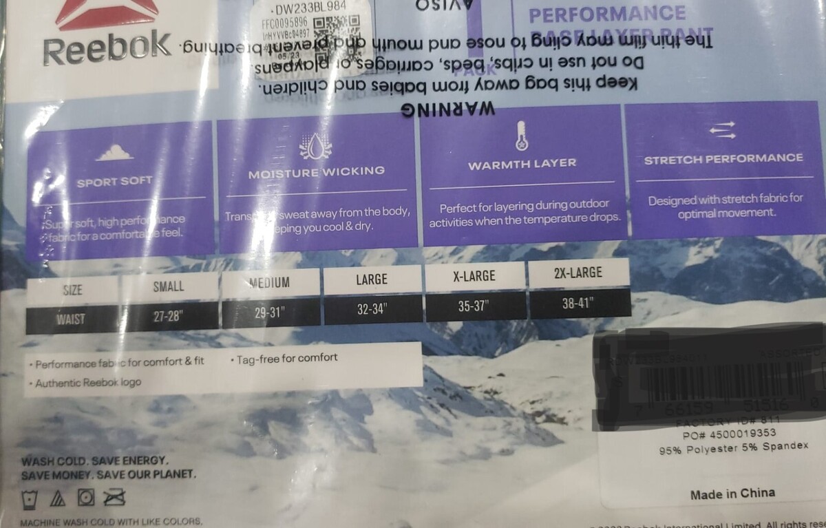 The Reebok Women's Base Layer Pant keeps you warm for all of your winter activities. With stretch zones and reinforced seams, these adult female thermal pants are designed to keep you warm, dry and completely comfortable. They're made of soft, stretchy fabric, with flat seams that prevent chafing. Tag-free labels keep you irritation-free and focused on your performance. The wicking fabric draws sweat and moisture away from your body.