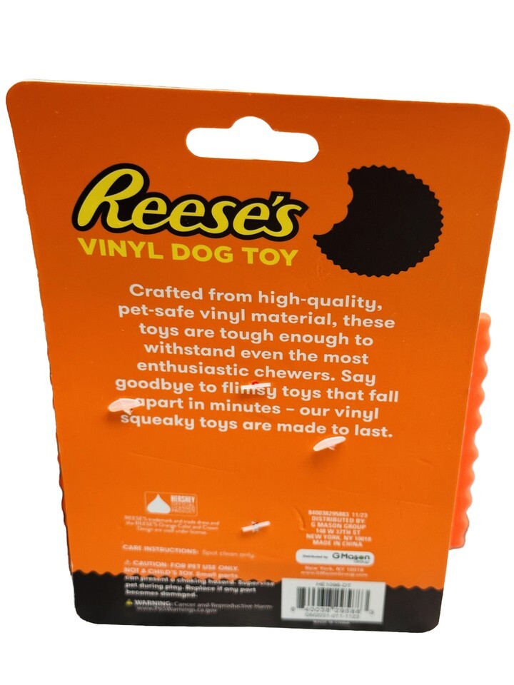 This Reese's Peanut Butter Cups Plastic Squishy Orange Dog Toy is a must-have for collectors and fans of the classic candy. Measuring approximately 4x5 inches, this original and unique item is perfect for display or play. The vibrant orange color and cute design make it a great addition to any collection, while the vinyl material ensures durability.
