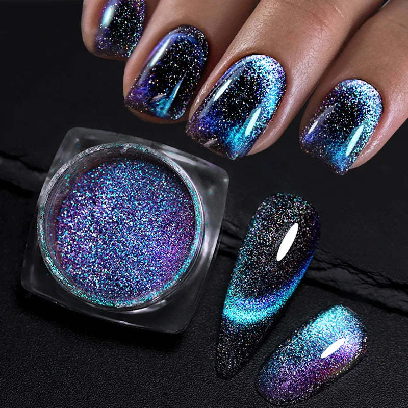 Reflective Magnetic Nail Powder ? Chameleon Chrome Cat-Eye Glitter Dust GIFT PACK