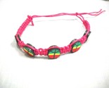 REGGAE PINK MACRAME RASTA COLOR PEACE SIGN BEADS TIE ON BRACELET / ANKLET
