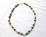- REGGAE RASTA COLORS AND SILVERTONE STRAND BEADED 18" NECKLACE LOBSTER CLAW
