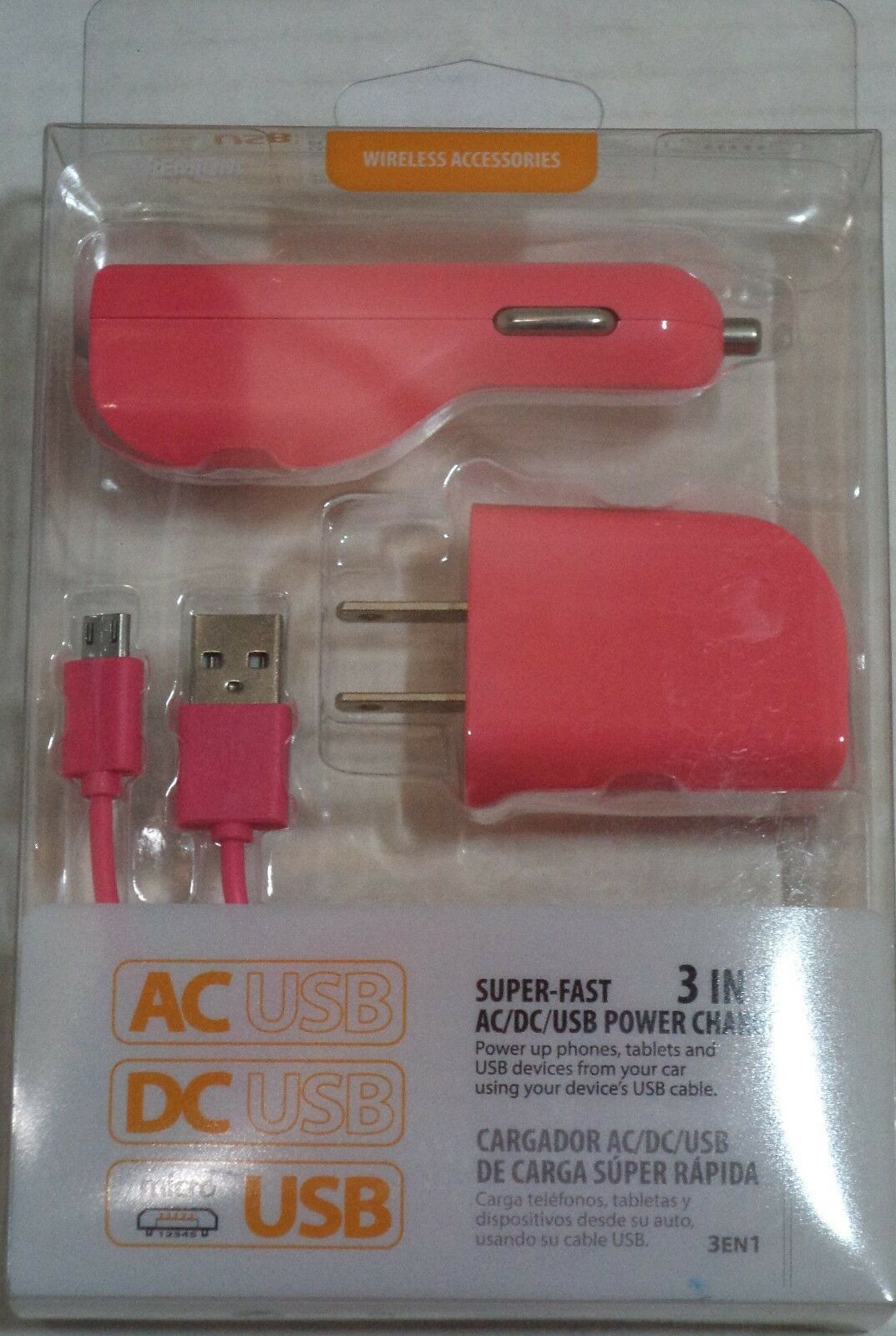 3in1 AC/DC/USB power charger; Fast power charges without a computer; Fast, power charges while you drive