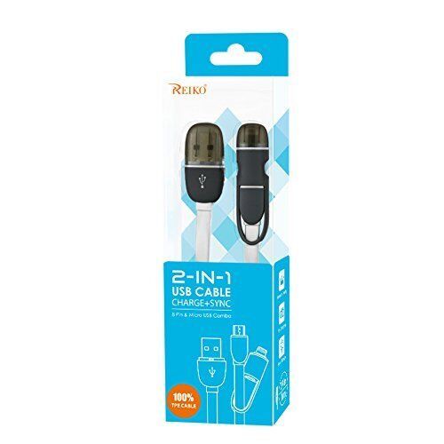 - Reiko 39" 2IN1 USB Data Cable for 8-PIN And MICRO-USB Devices Color White