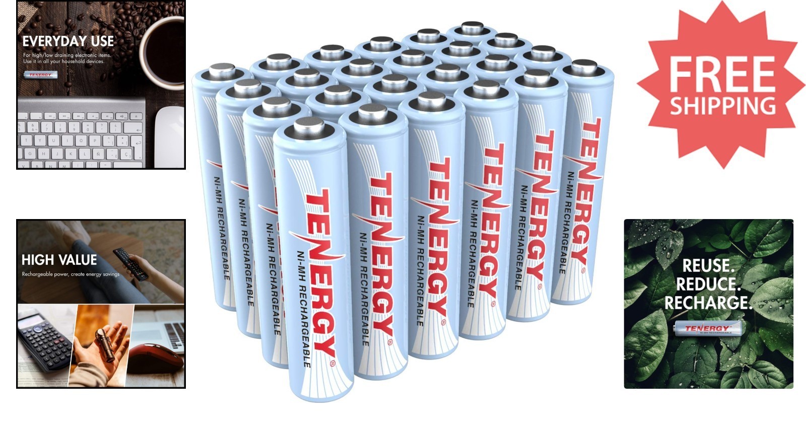 Upgrade your electronic devices with our 24-pack of replacement AAA NiMH rechargeable batteries. These eco-friendly, high-performance batteries boast a capacity of 1000mAh and a voltage of 1.2V, making them perfect for both high and low-drain gadgets such as LED lights, remote controls, flashlights, and more. Reusable up to 1000 times, they offer an economical and environmentally conscious alternative to disposable batteries, helping reduce waste and your carbon footprint. With no memory effect, you can charge these batteries whenever needed without fear of diminishing capacity. Switch to sustainable power with Tenergy rechargeable AAA batteries ? save money, conserve resources, and keep your devices powered efficiently.
