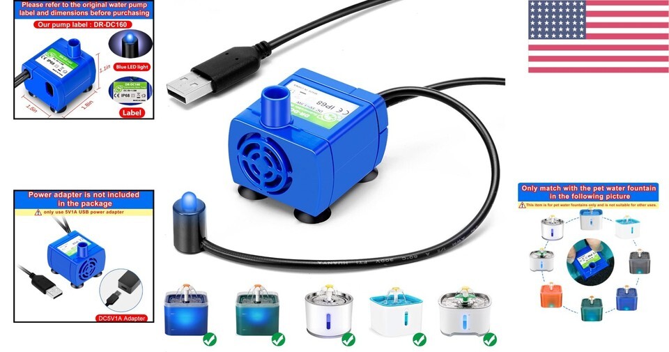Ensure compatibility by referencing the original water pump label ( with LED LIGHT) and dimensions before purchasing.