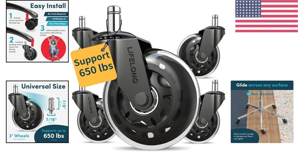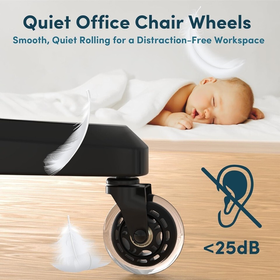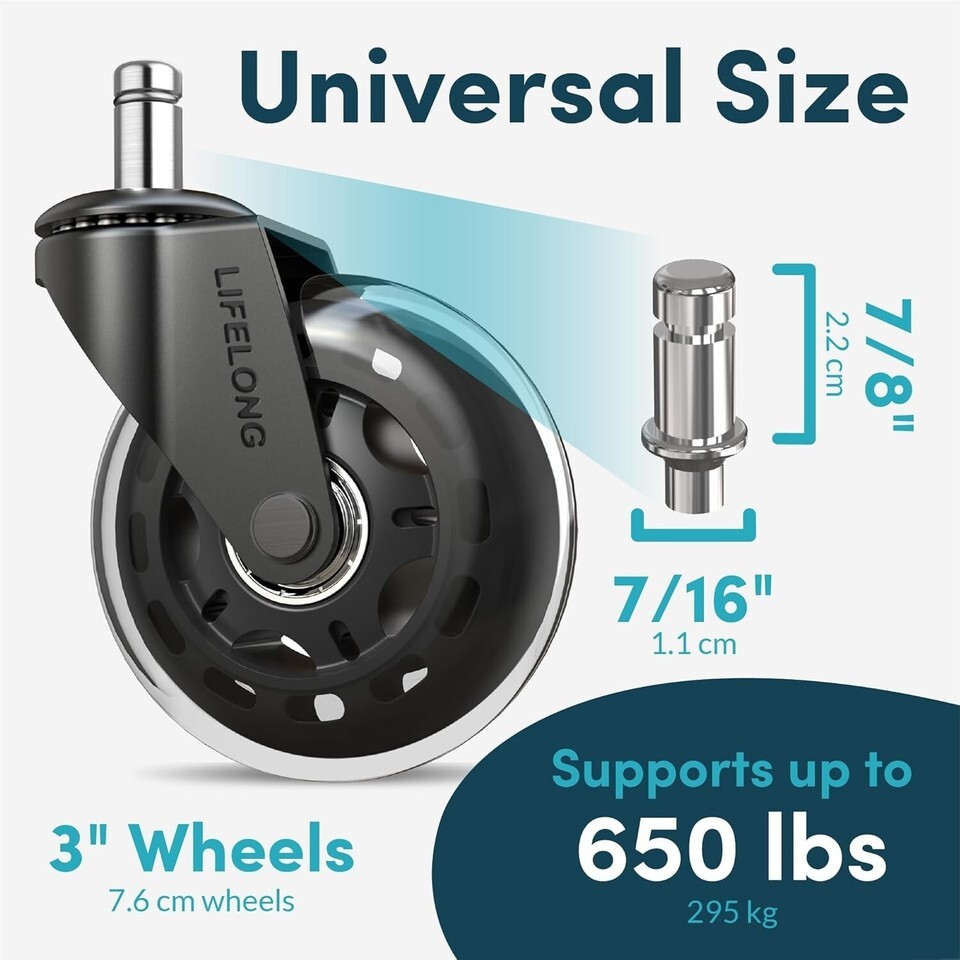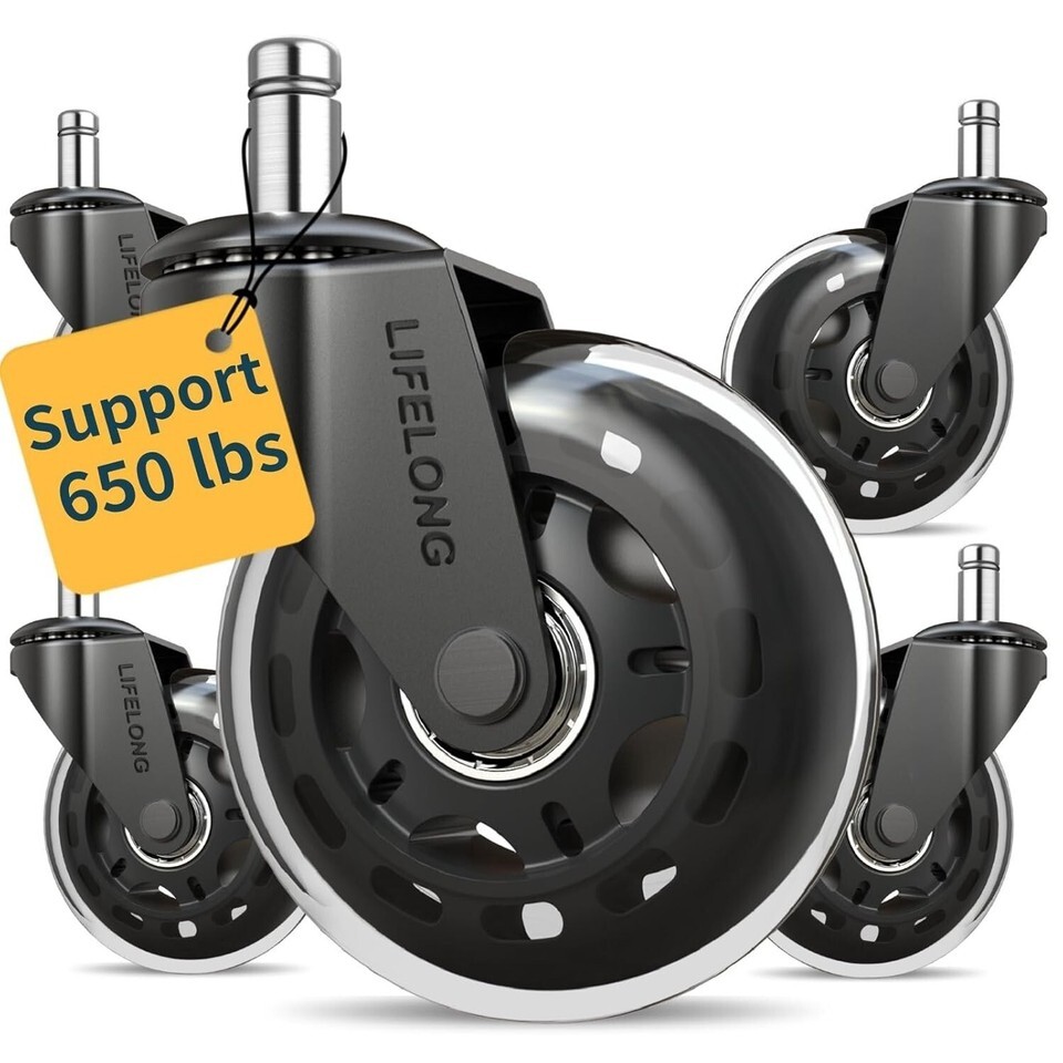 Reliable Heavy-Duty Casters for Office Chairs - Max Load 650 lbs, Easy Install