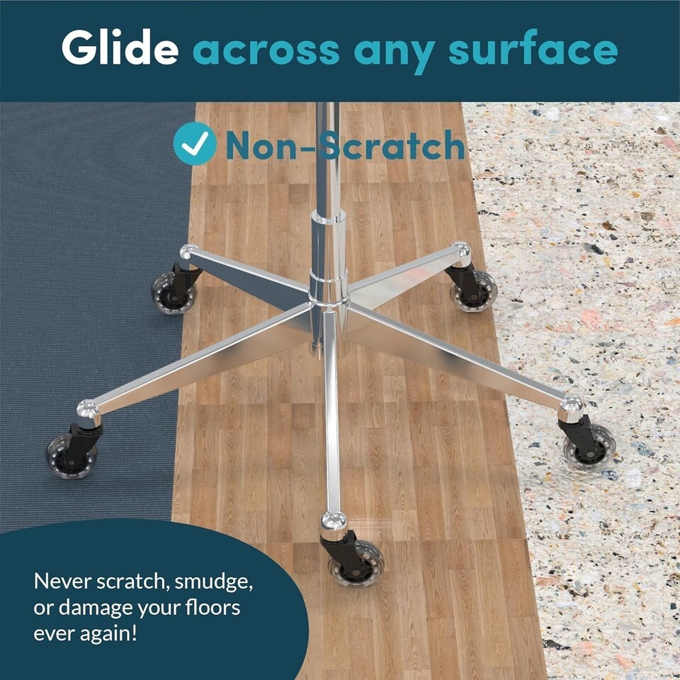 No more worrying about scratched floors or cumbersome chair mats; instead, focus on what truly matters ? your work. Upgrade your office experience today with these exceptional casters!