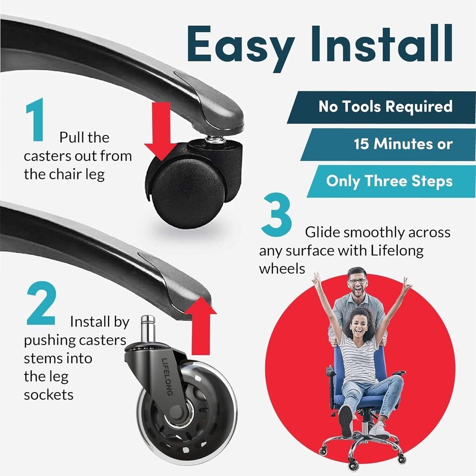 - Reliable Heavy-Duty Casters for Office Chairs - Max Load 650 lbs, Easy Install