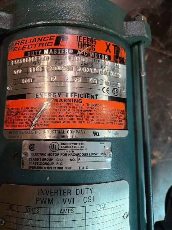 Reliance Electric XT DUTY MASTER INVERTER DUTY P56X4075T-MH HB56C 1/2 Hp Frame Hb56C Motor 230/460V 1140RPM