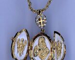 - Religioso Uovo Ciondolo W/Trasparente Cristallo Croce, Bianco Main Con Decoro E