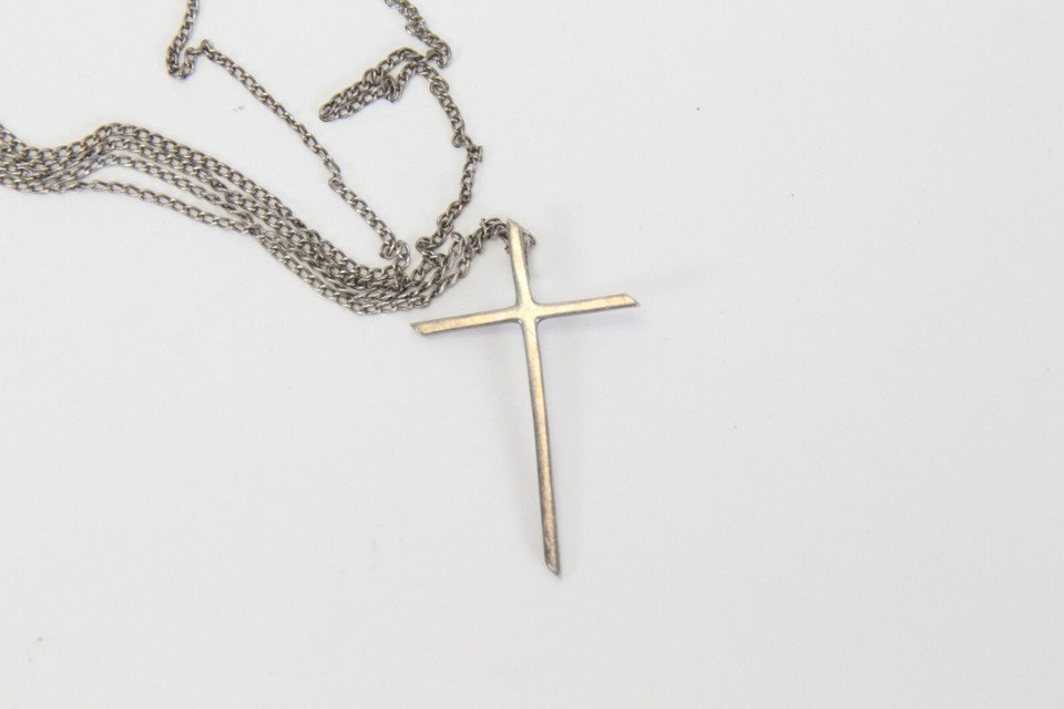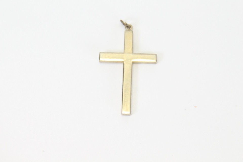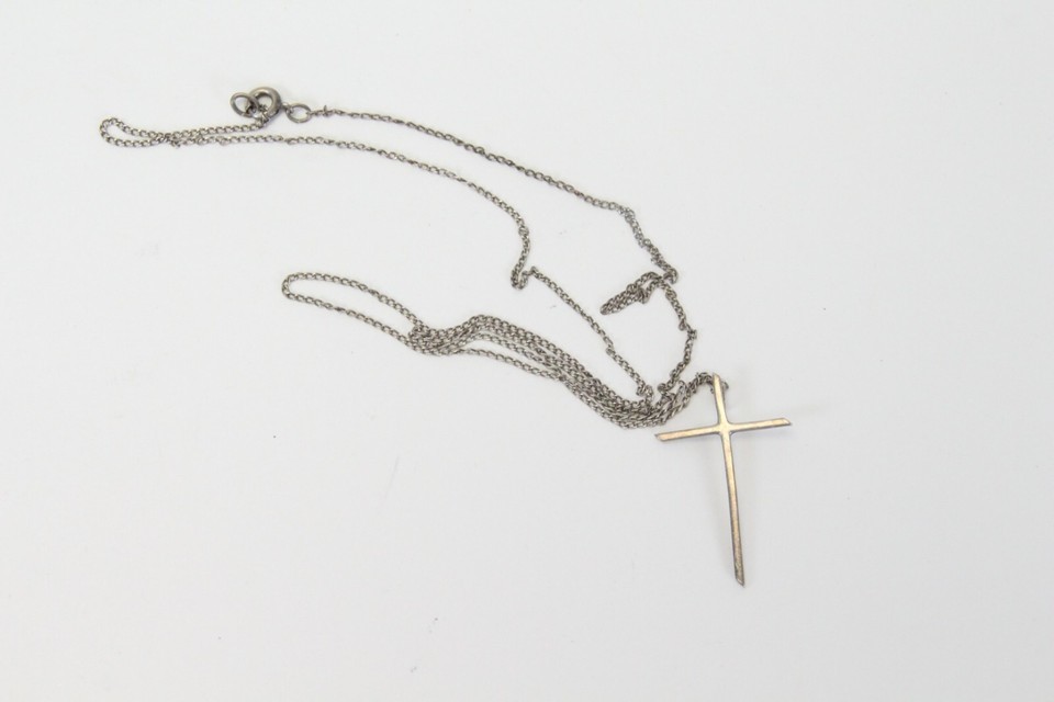 Silver Cross = .8" w x 1.2" h with 18" Chain