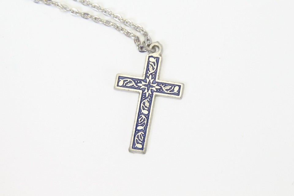 Blue Cross = .8" w x 1.4" h with 18" Chain