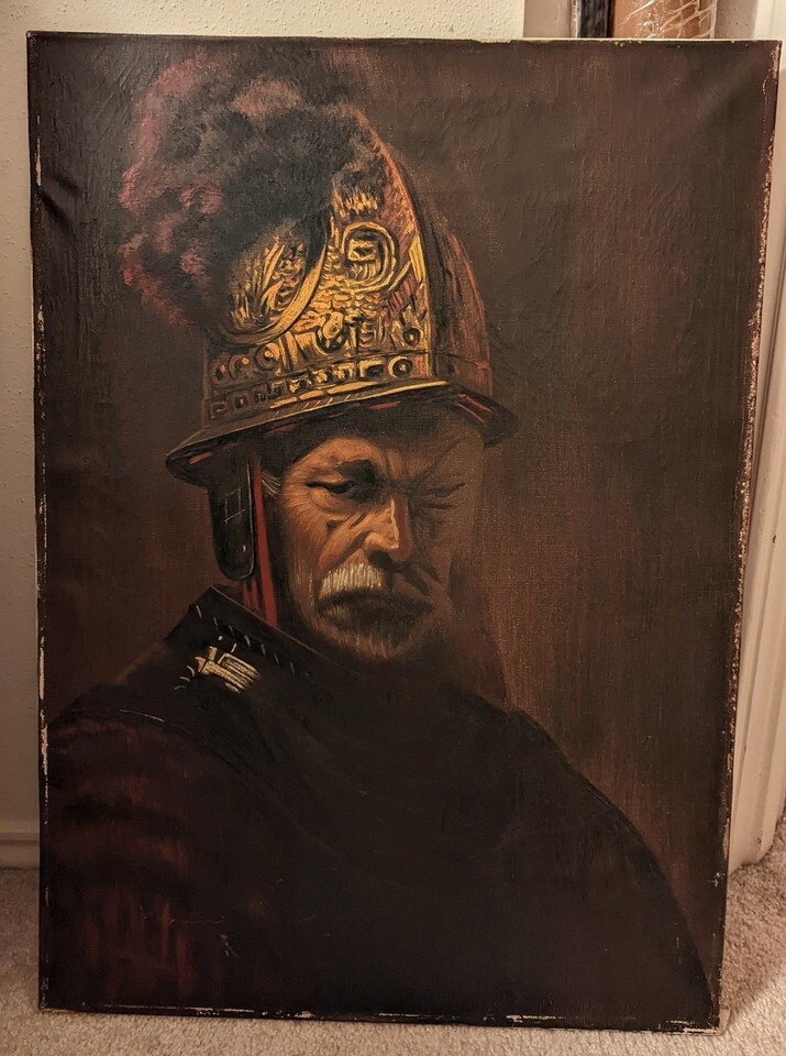 This is for a nice rendition of "The Man in The Golden Helmet." A lot of work went into this one. Canvas needs a re-stretch.
