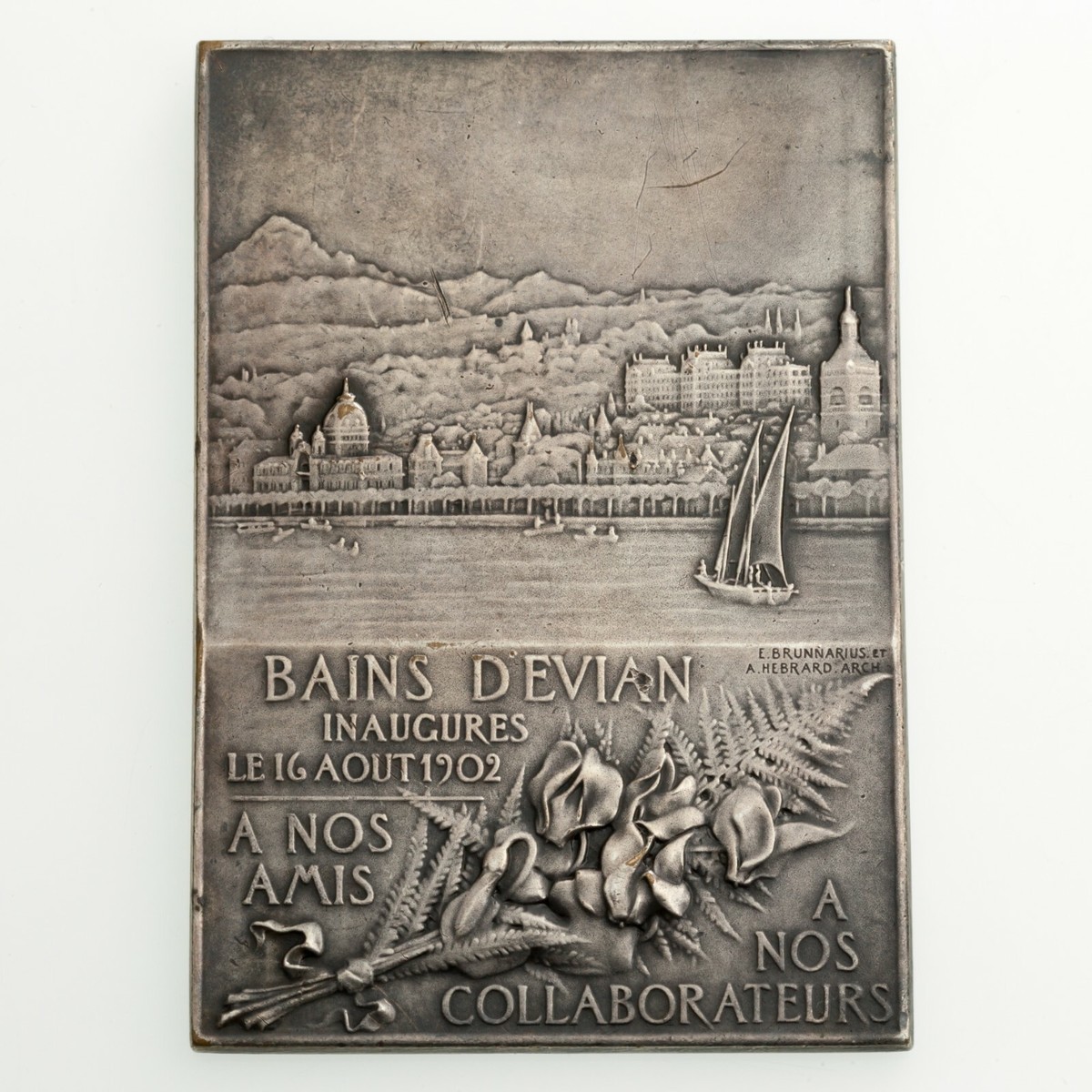 - Rep. of France 1902 BAINS D'EVIAN Bronze Medal w/Silver Overlay By. F. Vernon