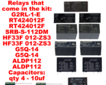 Relays that come in the kit: RT424012F, RT424012F, SRB-S-112DM, HF33F 012-ZS3, G2RL-1-E, HF33F 012-ZS3, G5Q-14, ALDP112, ALDP112, G5Q-14 and capacitors: 10uf - qty 4