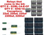 Components that come in the kit: QTY 8 G2RL-1A-E-CF, QTY 9 G5Q-1A, Capacitors: 22uf, 220uf, 220uf, 2200uf, 2200uf