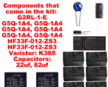 Relays that come in the kit: G2RL-1-E, G5Q-1A4, G5Q-1A4, G5Q-1A4, G5Q-1A4, G5Q-1A4, GAQ-1A4, HF33F-012-ZS3 and HF33F-012-ZS3 (Note: G5Q-1A4 is a direct substitute for relay ALQ3F12 and will perform the same), K385 varistor capacitors 22uf 82uf