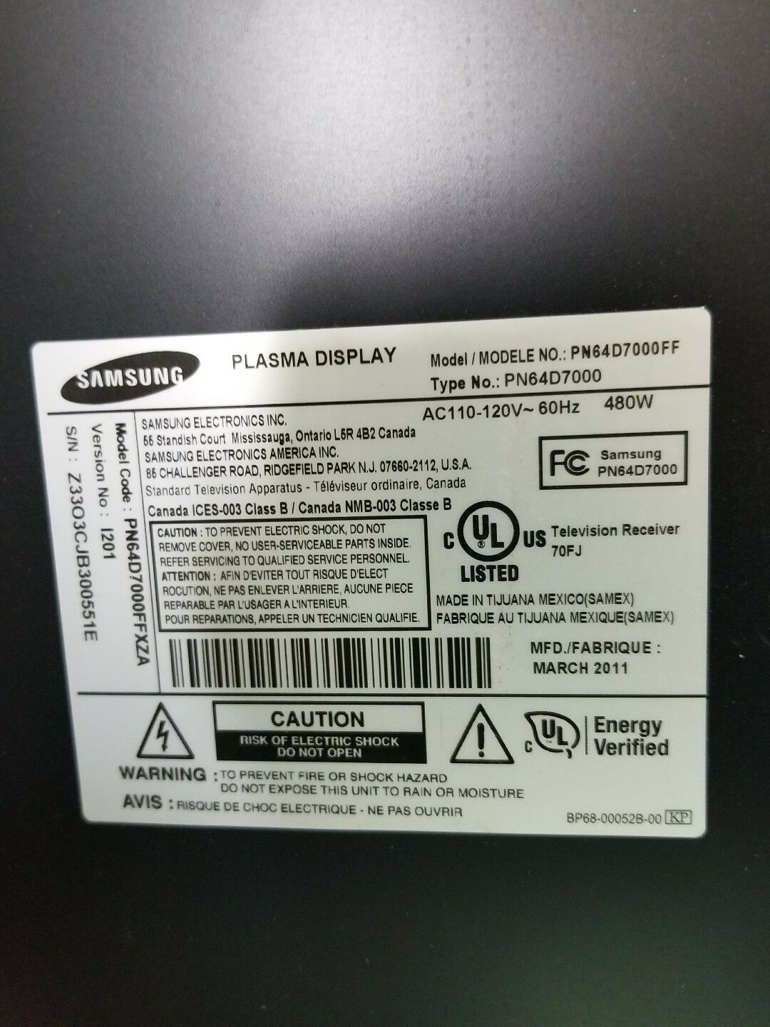 - REPAIR SERVICE Samsung BN94-04689C Main Board PN64D7000FFXZA BN41-01605A
