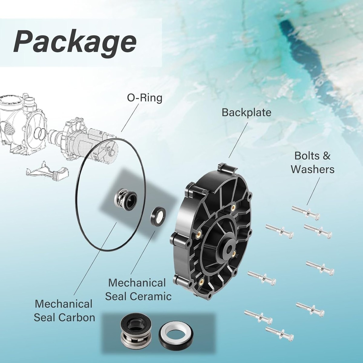 ???Items Included?Covers everything you need for repair: 1*Backplate, 2*Mechanical Seal Carbon, 2* Mechanical Seal Ceramic, 1* O-Ring, 8* Bolts and 8*Washers