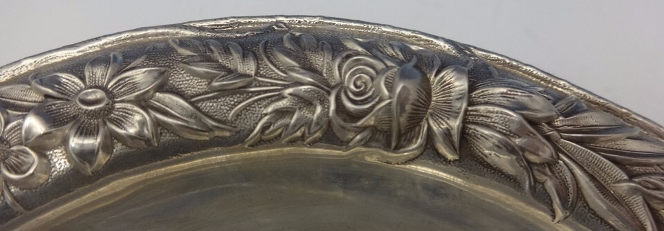 This pattern was named after the art of repousse (the process of embossing metal from the back by hammering), originally used in European silversmithing. The Repousse pattern, first crafted in 1828, features an intricate floral design.