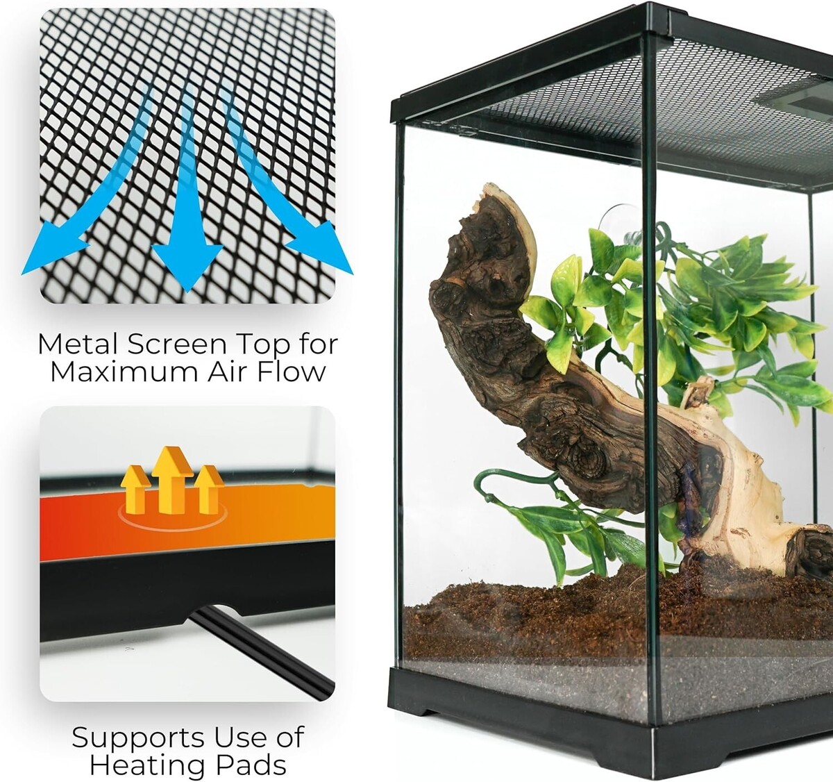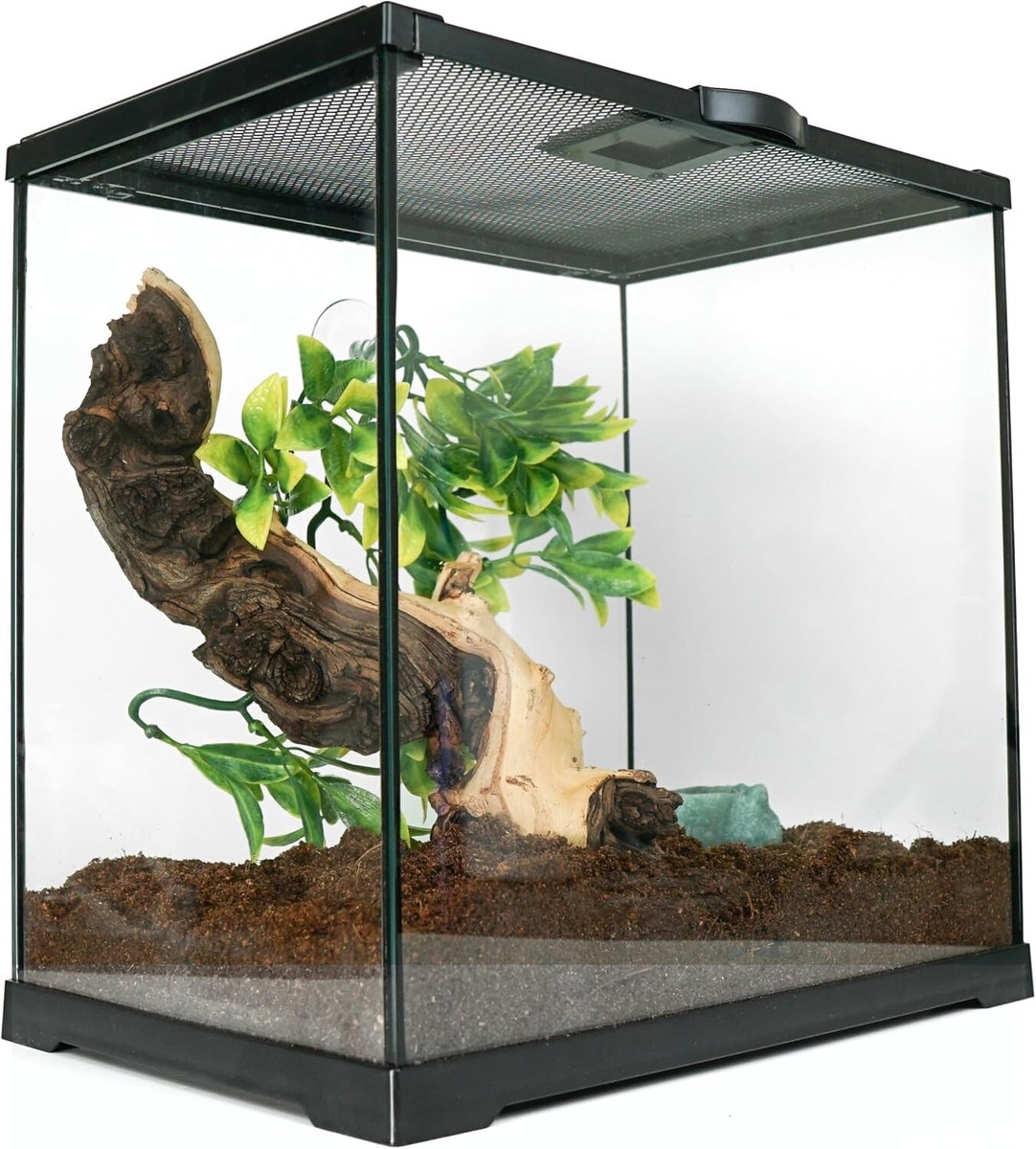 NATURALISTIC DESIGN: The terrarium's clear glass and compact size make it easy to decorate with natural elements like plants, rocks, and substrates. This creates a lifelike environment that enriches your reptile's habitat and promotes natural behaviors.