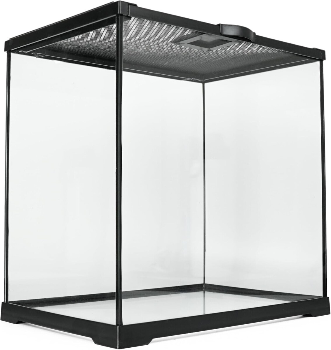THE PERFECT SIZE: Measuring 12in x 12in x 8in, our glass reptile terrarium is ideal for small reptiles (lizards, snakes, frogs) or as a starter habitat. Its compact dimensions make it perfect for limited spaces without compromising on your pet's comfort.