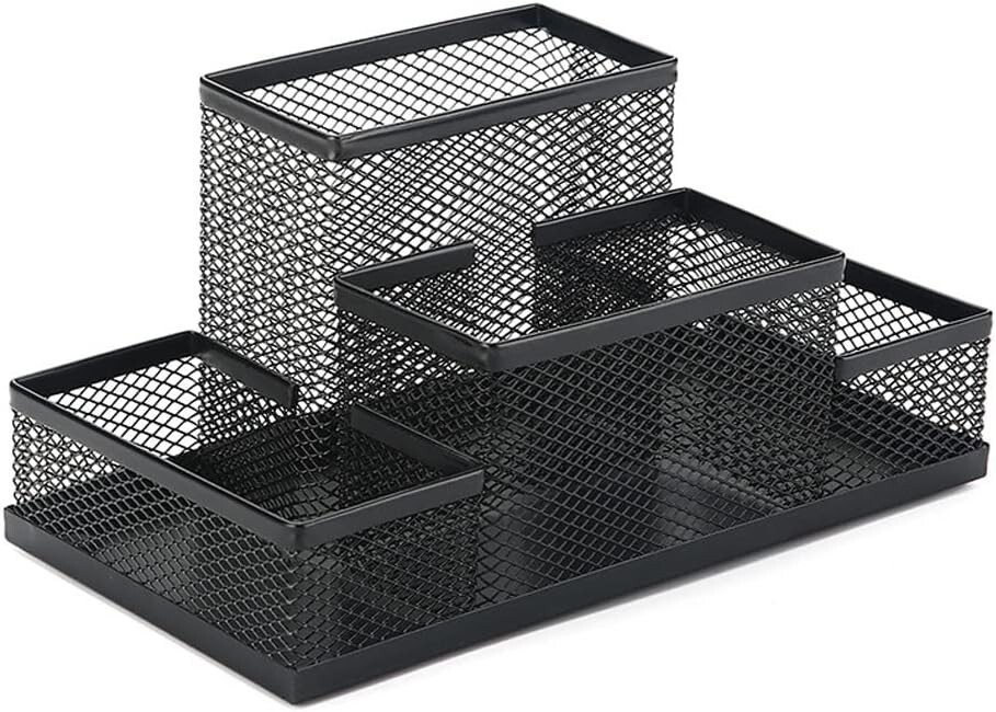 - Rerii Mesh Pen Holder for Desk, 4 Compartments Pencil Stationary Holder Desk Org