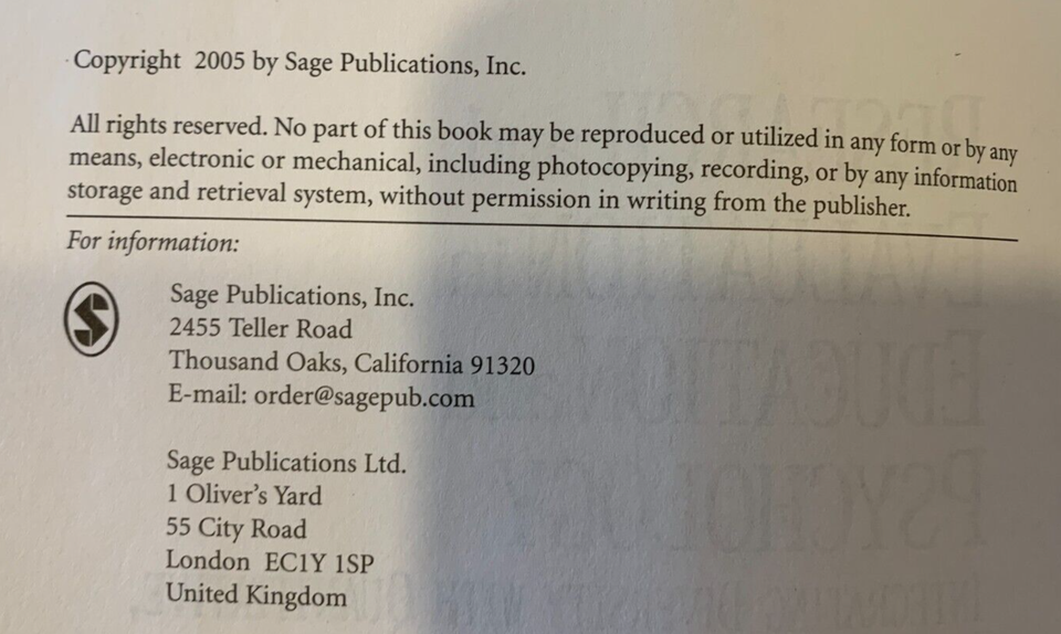 - RESEARCH and EVALUATION in EDUCATION and PSYCHOLOGY, Mertens, 2d.Ed. 2005 [e-11]